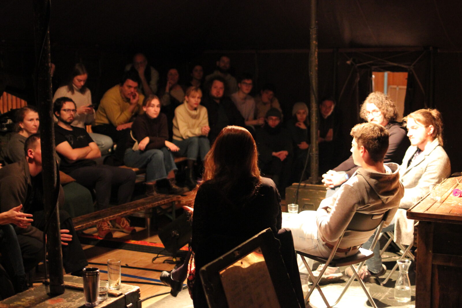 Po představení Putin lyžuje /hra o zrození vraha/ v Nové Cvernovce následovala debata, kterou moderoval politolog a žurnalista Denníku N Mirek Tóda. S publikem besedovali režisérka představení Pavla Dombrovská a dva mladí rušští aktivisté žijící na Slovensku.