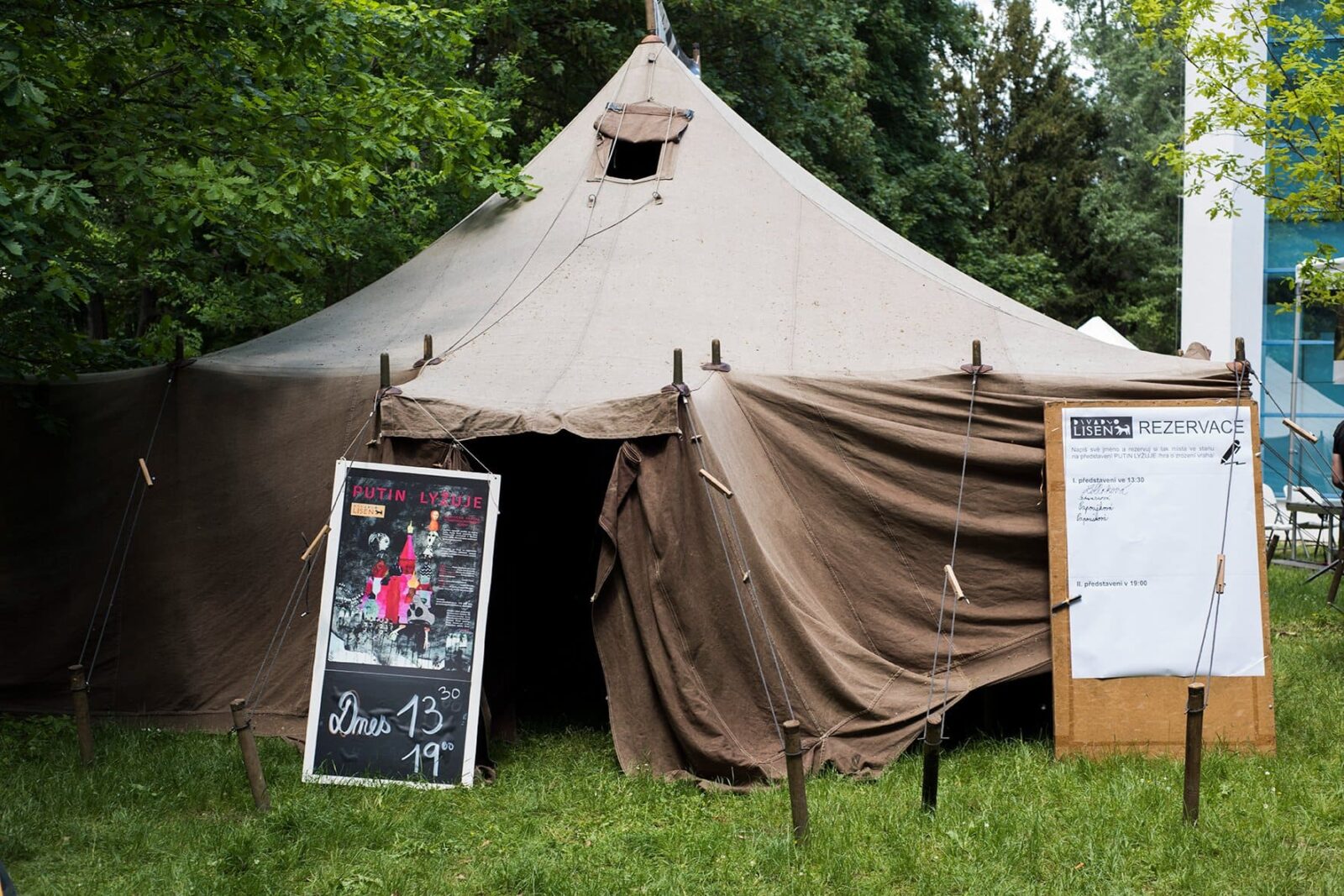 V sobotu 21. května jsme hráli dvě představení PUTIN LYŽUJE /hra o zrození vraha/ na Běhu pro Paměť národa u Pavilonu Anthropos v brněnských Pisárkách. Mezi představení jsme besedovali s ředitelem pořádají pobočky Paměť národa Jižní Morava Davidem Butulou, který představil organizaci Post Bellum, její aktivity a zodpověděl dotazy přítomných diváků.