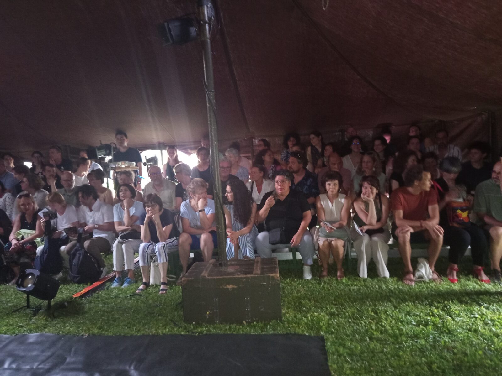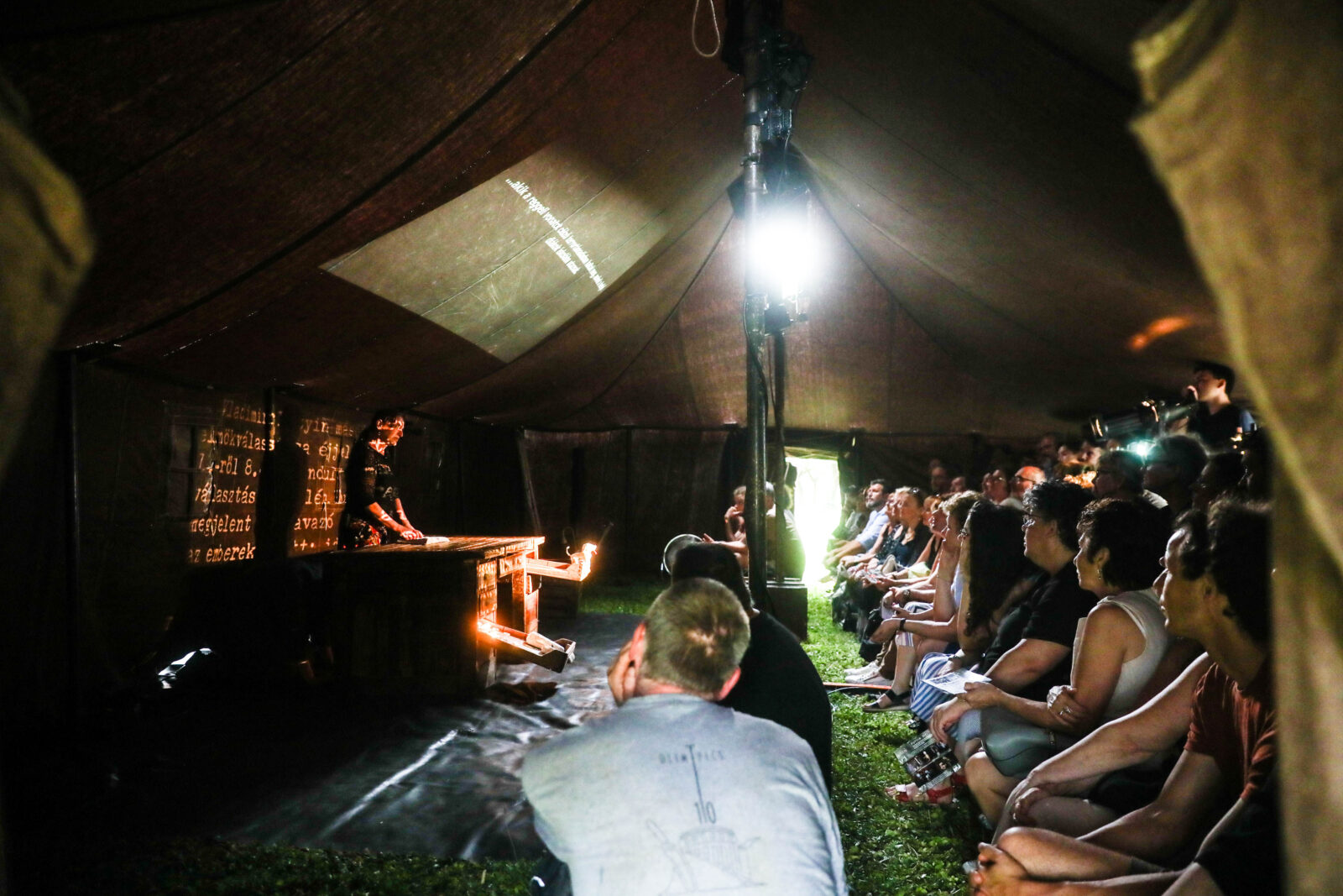 Děkuji za recenzi Ölbei Lívia / která výstižně pojmenovává smysl i detaily hry, přestože ve stanu, který se ve třicetistupňovém vedru podobal spíše akváriu, se jednalo o hraniční fyzický zážitek pro herce i publikum.