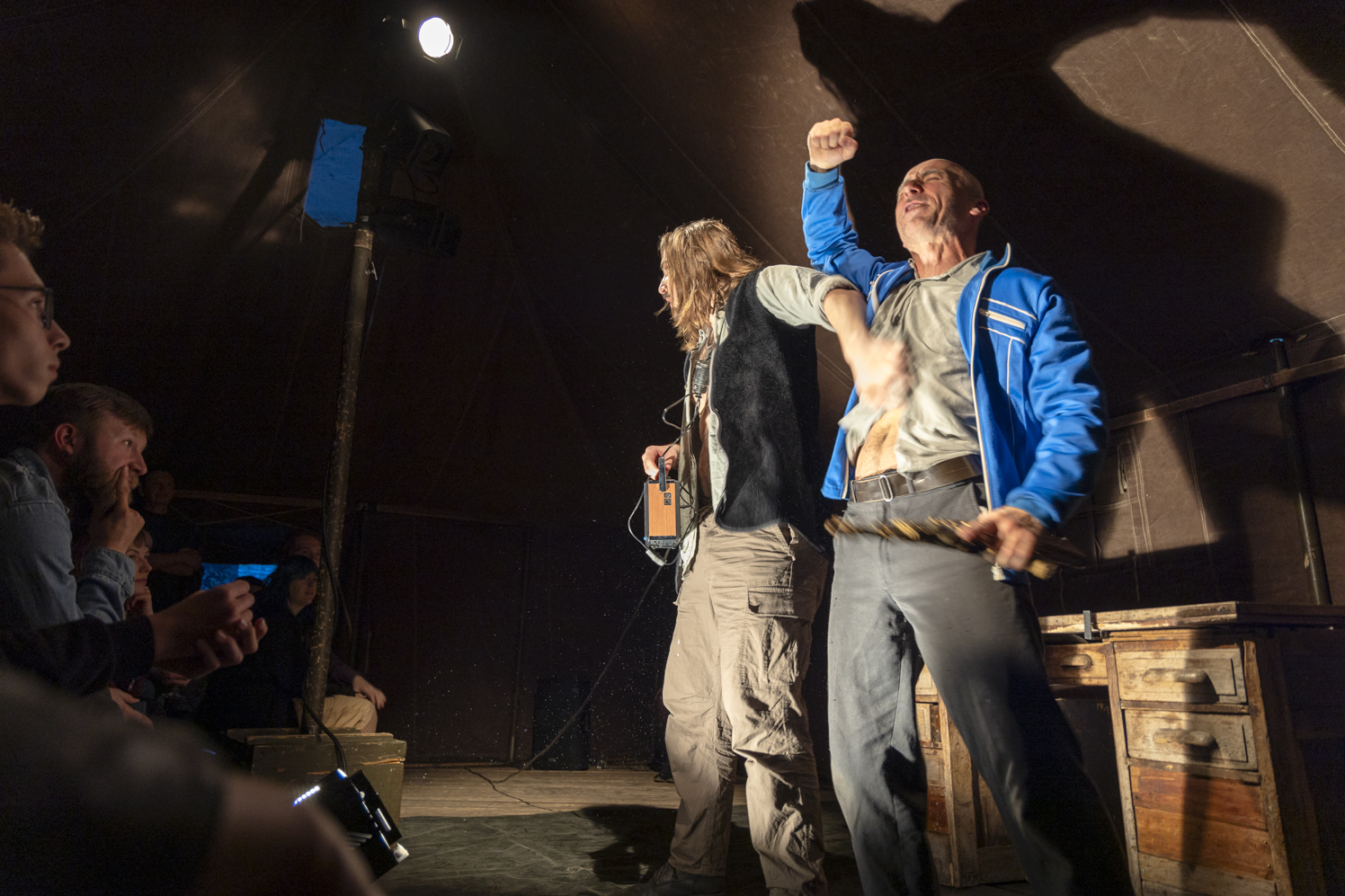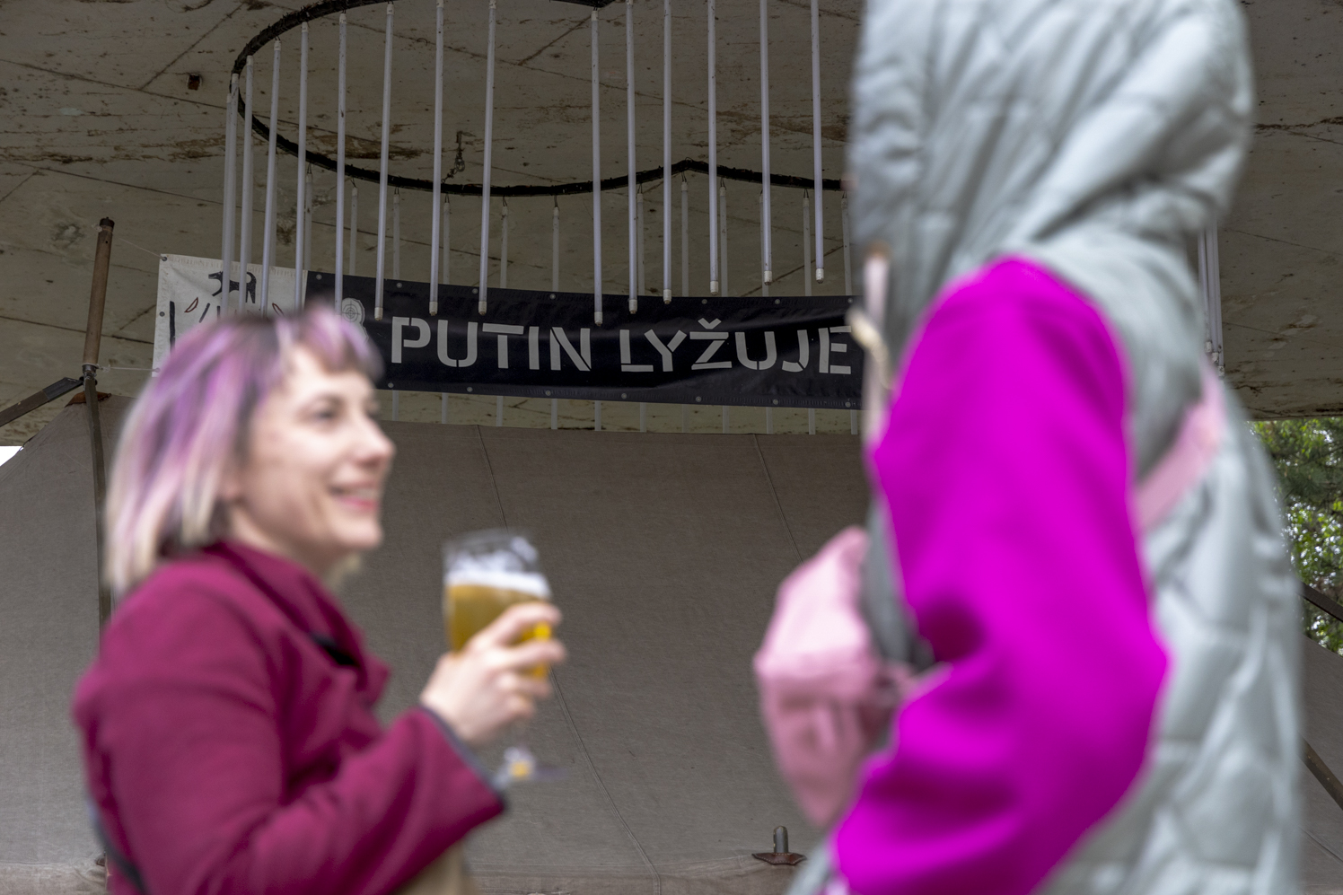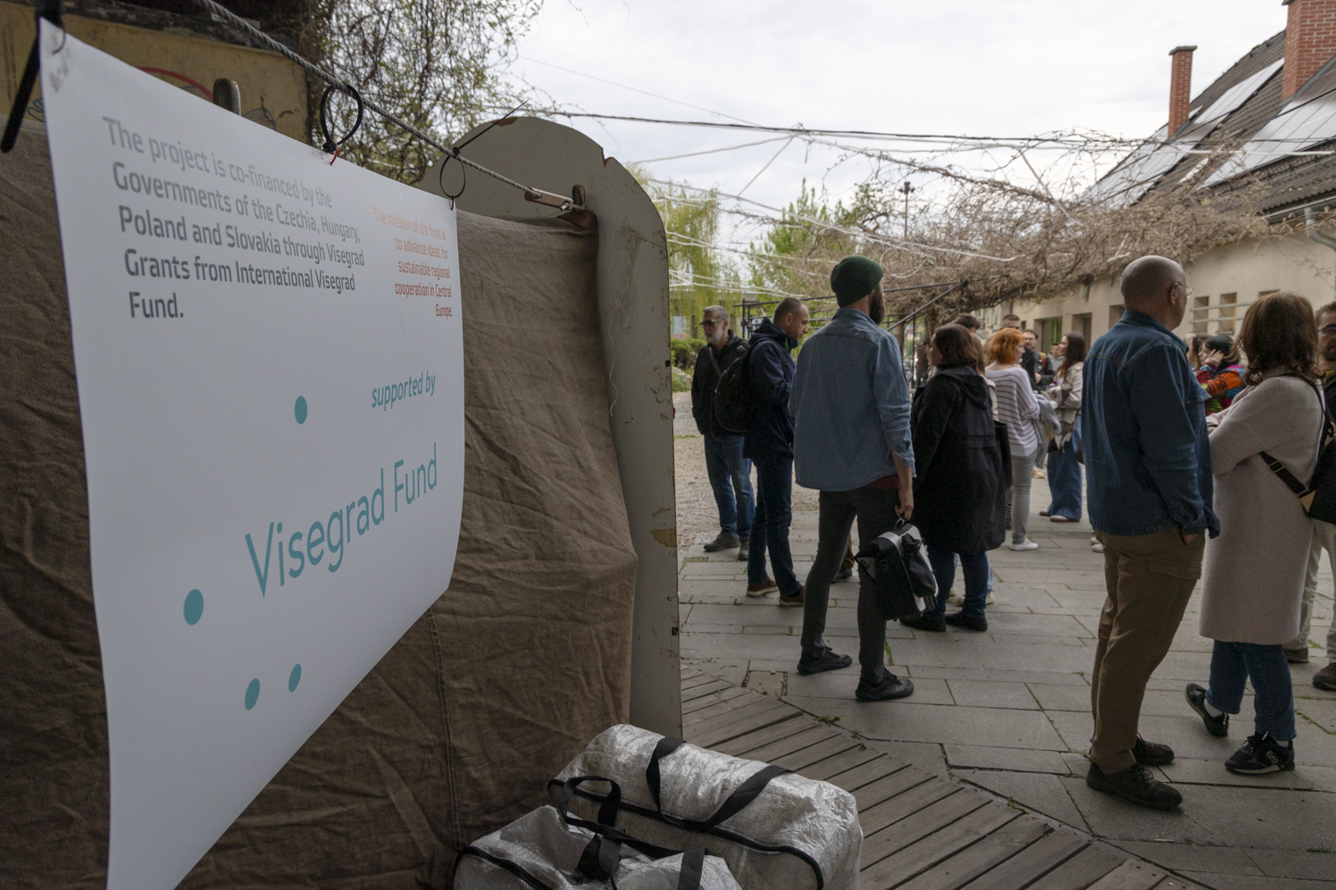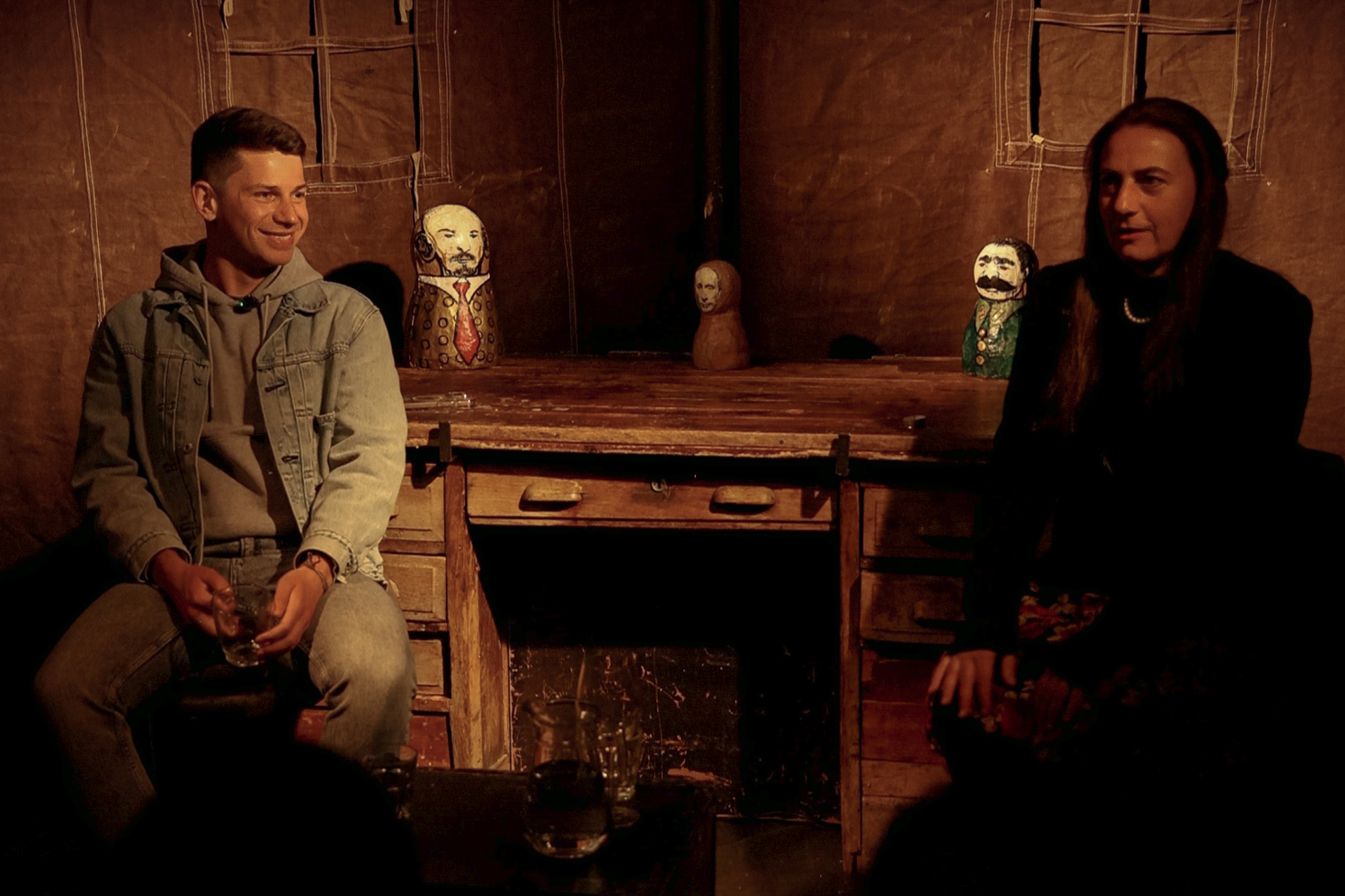 Představení s besedou se odehrálo ve vojeneském stanu venku pod mostem vedle kulturního centra Stanica – Žilina Zárečie.