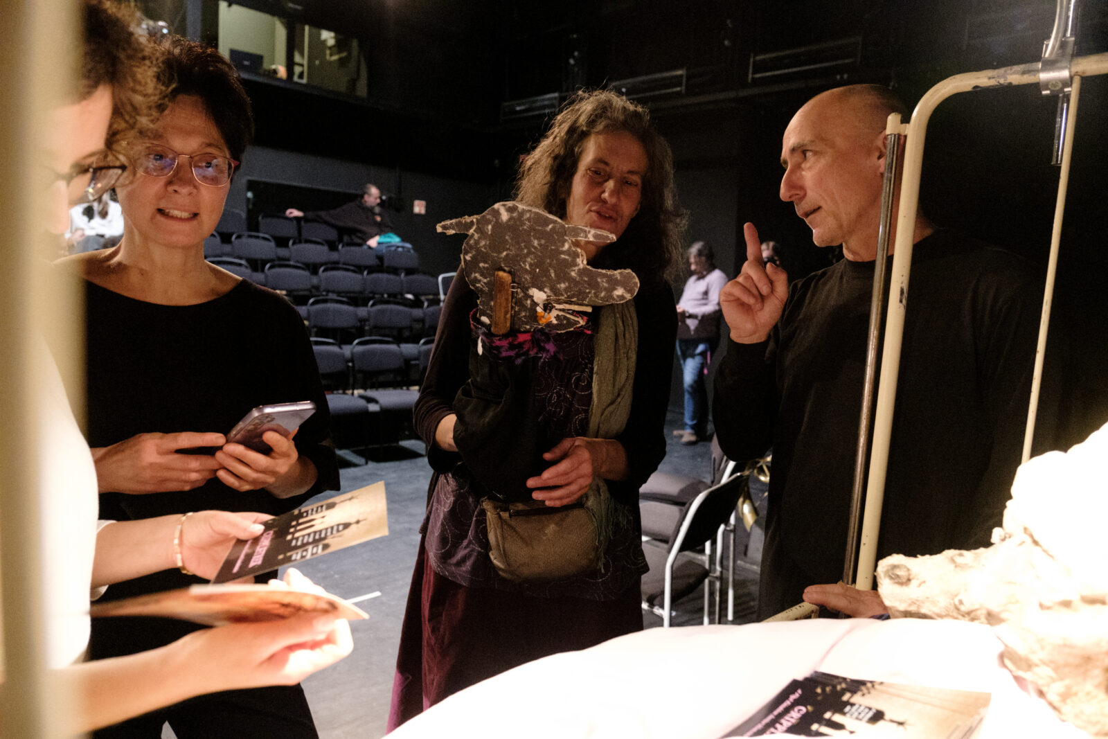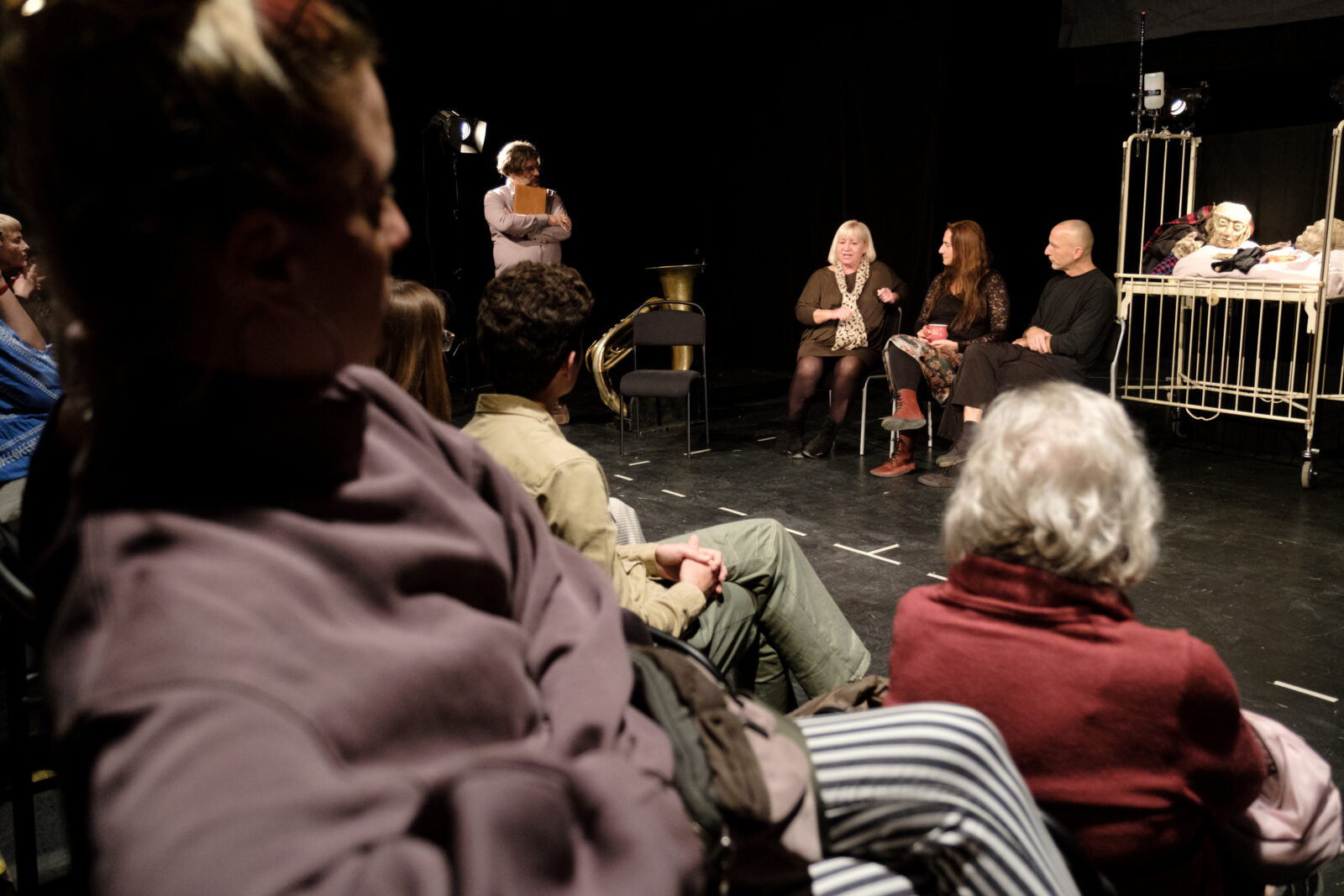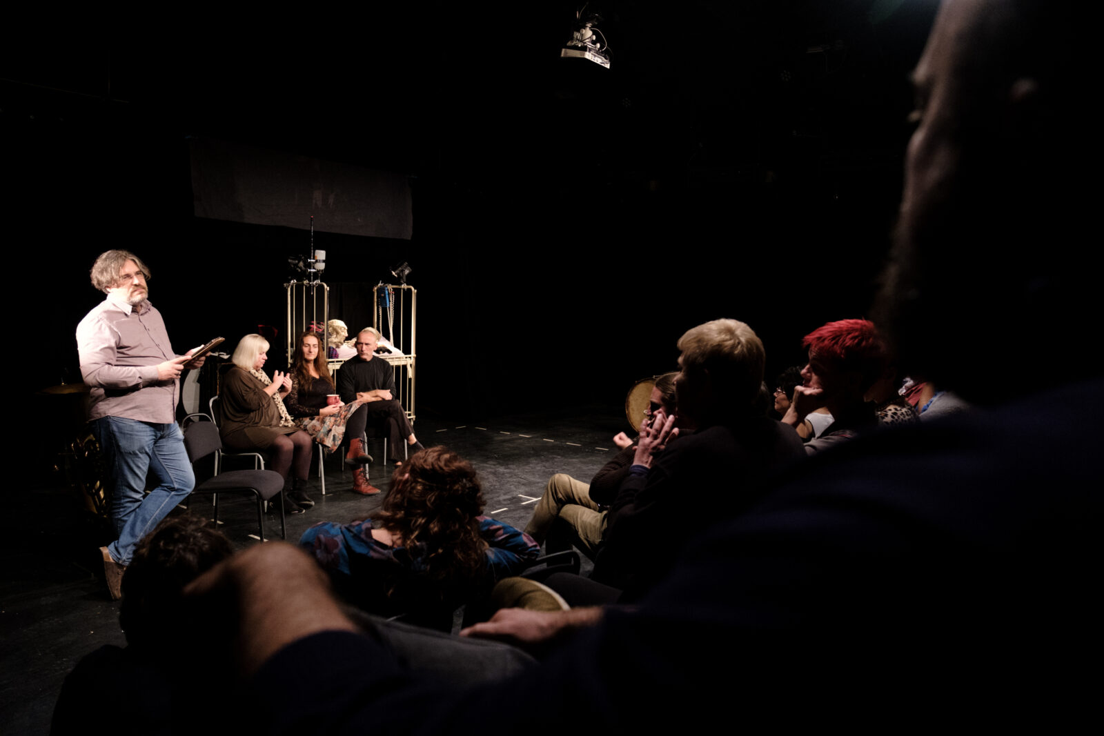 Po představení Kriplštreka tvůrci inscenace Pavla Dombrovská a Luděk Vémola besedovali s publikem nejprve v rámci diskuse moderované Tamásem Schauermannem a poté spontánně s publikem o tématech představení i formě inscenace.