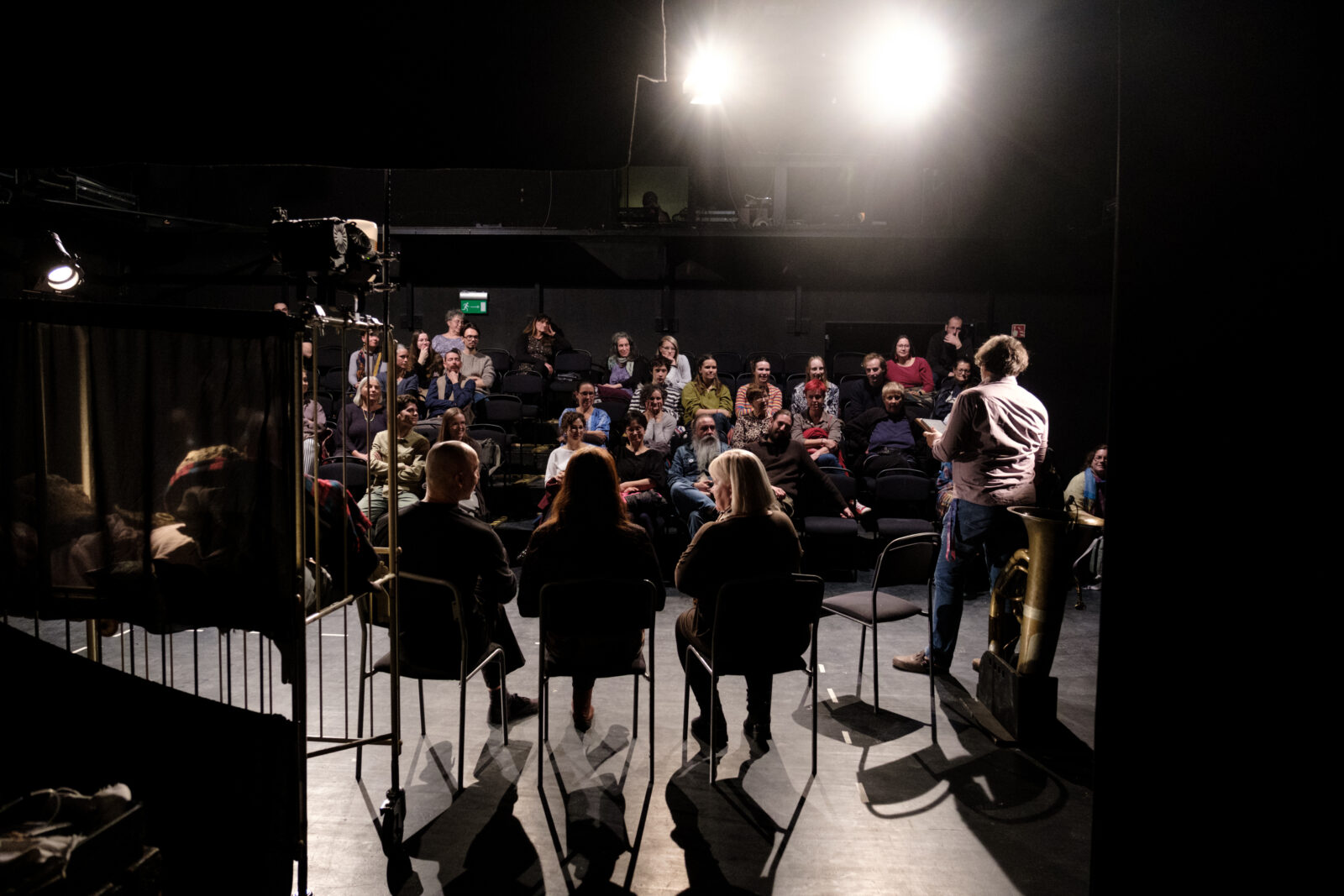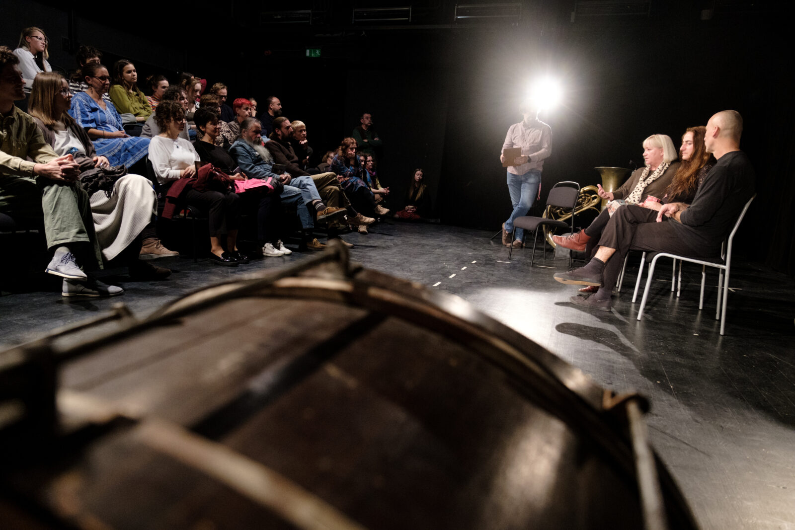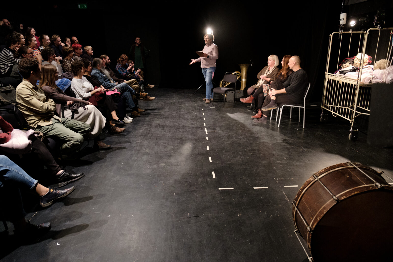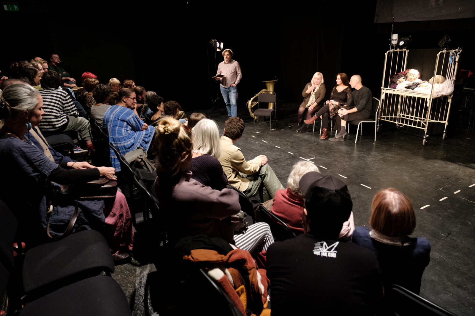 Po představení Kriplštreka tvůrci inscenace Pavla Dombrovská a Luděk Vémola besedovali s publikem nejprve v rámci diskuse moderované Tamásem Schauermannem a poté spontánně s publikem o tématech představení i formě inscenace.