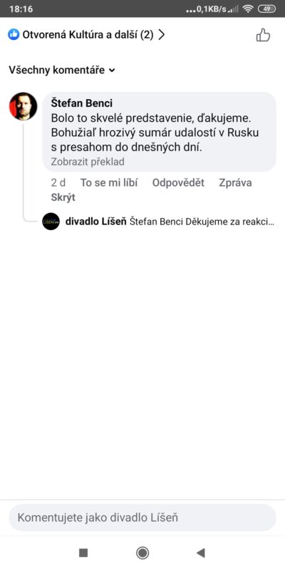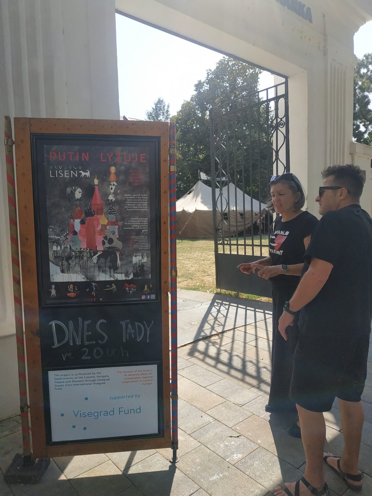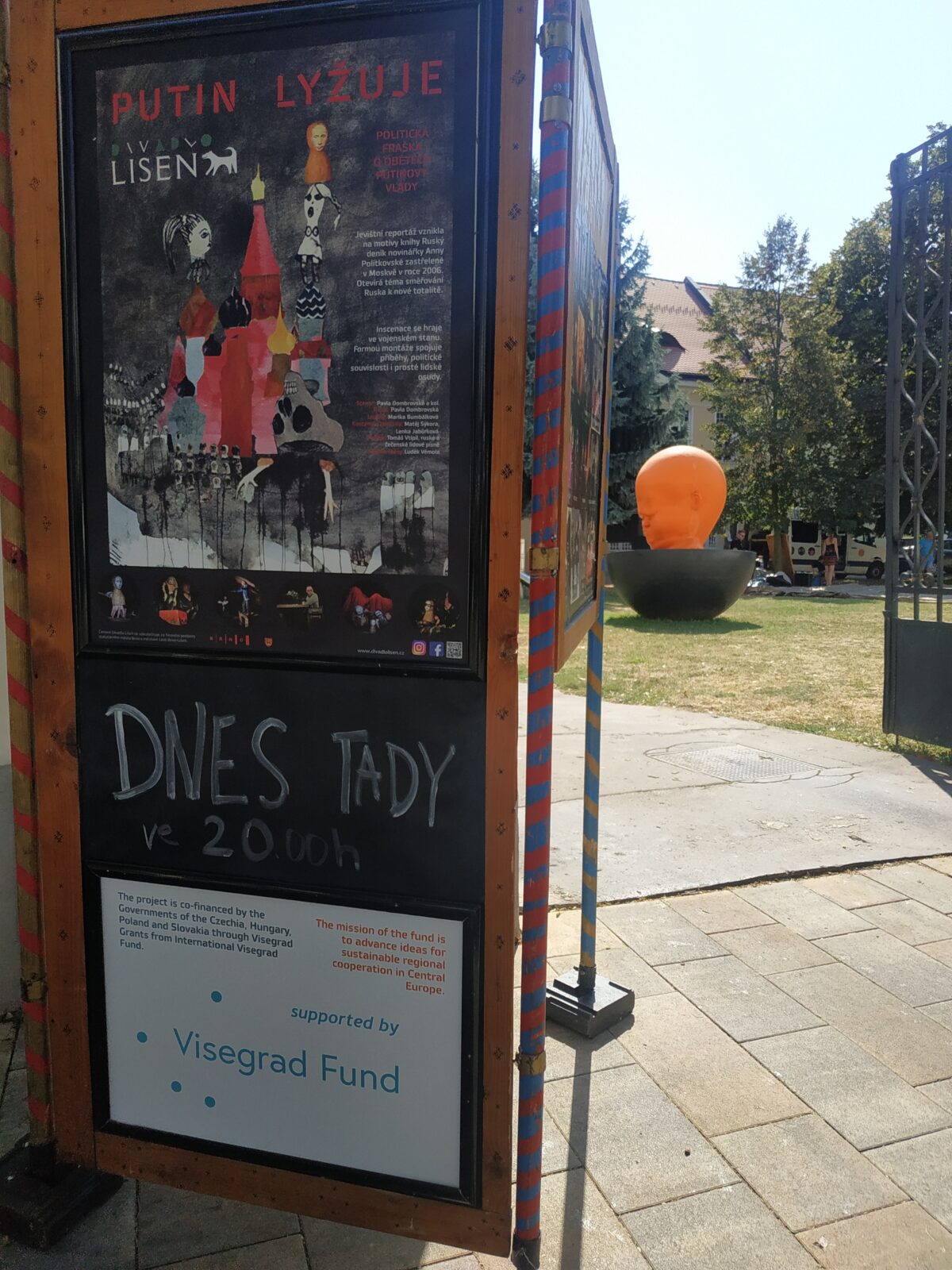 Projekt Provokující divadlo ve Visegradu jsme zahájili představením Putin lyžuje /hra o zrození vraha/ na Slovensku v Trnavě v den, kdy platforma Otvorená Kultúra vyhlásila stávkovou pohotovost – celoslovenskou koordinovanou akci kulturní obce.