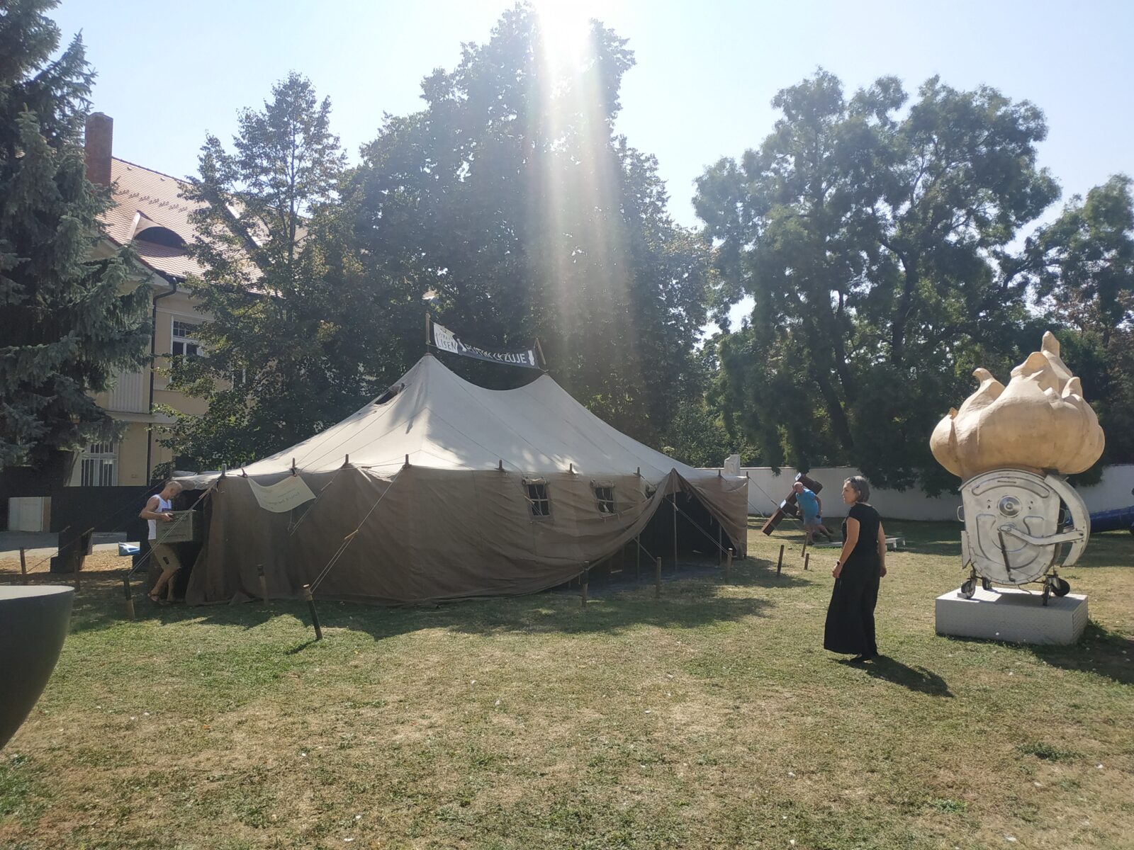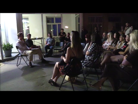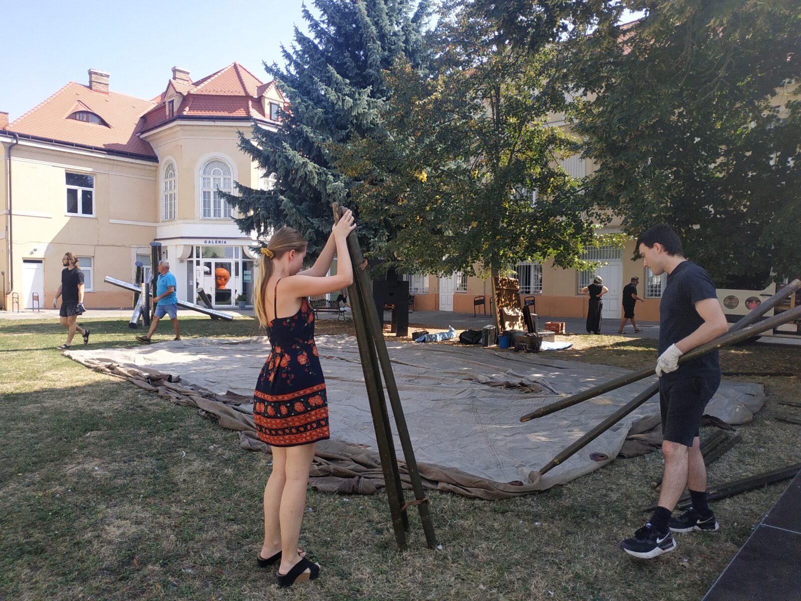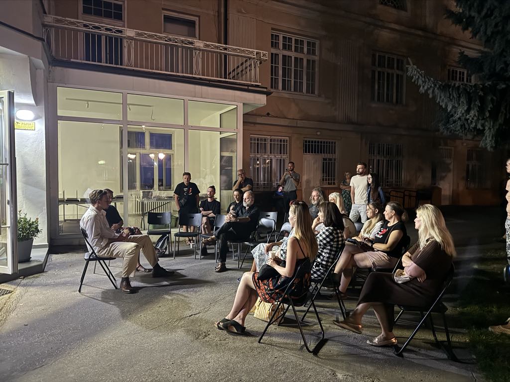 Po představení ve venkovních prostorách Galerie Jána Koniarka (kde se konalo i představení), proběhla beseda s autorkou inscenace Pavlou Dombrovskou a Adriánem Kobetičem, ředitelem Galerie Jána Koniarka. Tématem besedy byl obsah inscenace rezonující se současným děním. Na dotaz z publika byl popsán způsob vzniku inscenace – tvorba scénáře, výtvarných prostředků i pro divadlo specifické práce přímo na jevišti.