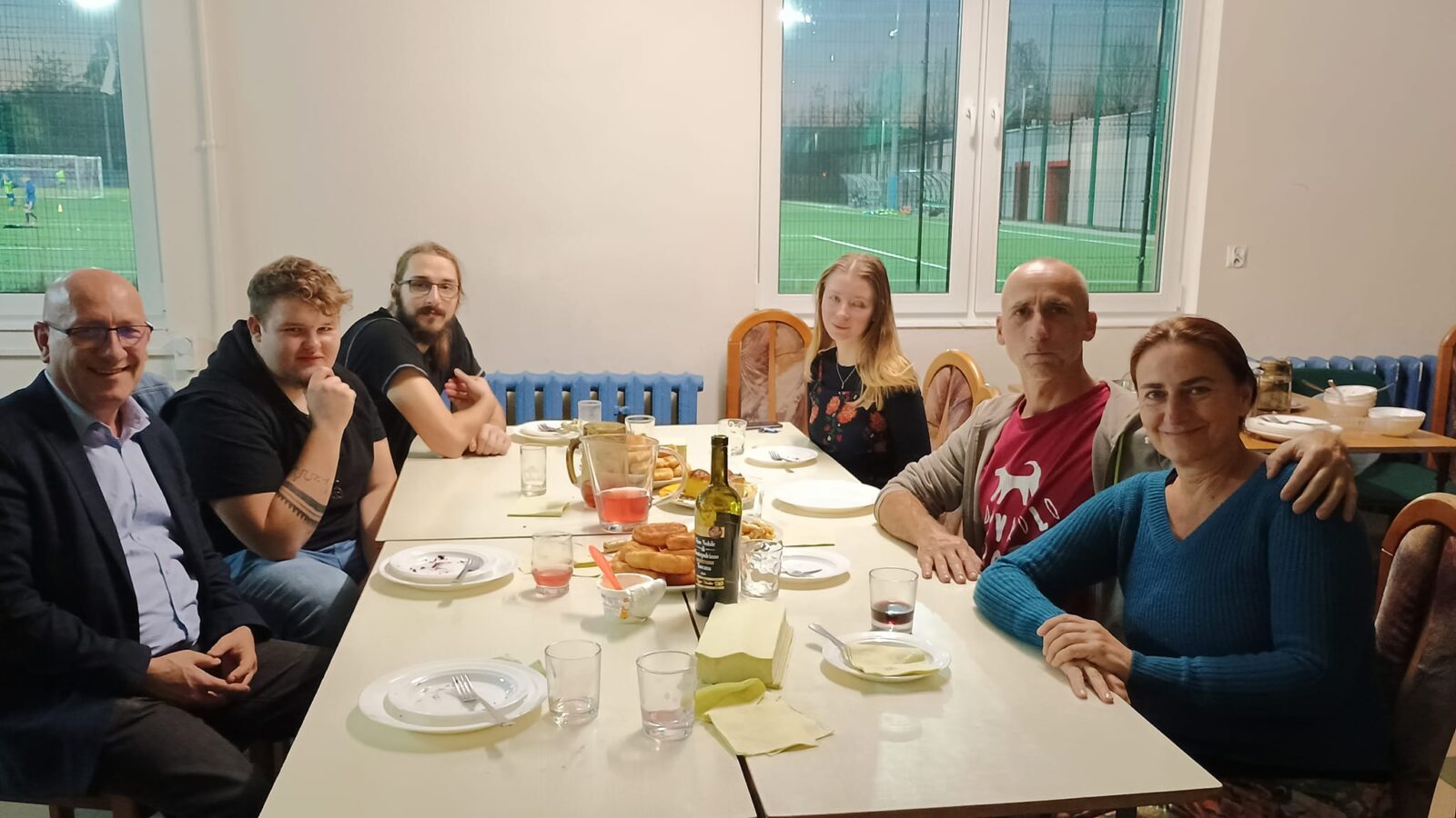 Je nutné ocenit i vynikající boršč s pampušky, vareniky, nalysnyky, pelmeně… a ty božské dortíky plněné borůvkovým krémem – vše zapíjeno vínem a kompotem! Takovouto hostinu nám vystrojila Viktorie a další ženy z legnické ubytovny, v níž jsme spolu s matkami a dětmi z Ukrajiny našli i my útočiště. Místo nám také připomnělo, že přestože hru o zrození vraha hrajeme již patnáctým rokem, důsledky tehdejších událostí, o nichž hrajeme na jevišti, nás provázejí v každodenní realitě a ovlivňují nejen naše životy.
