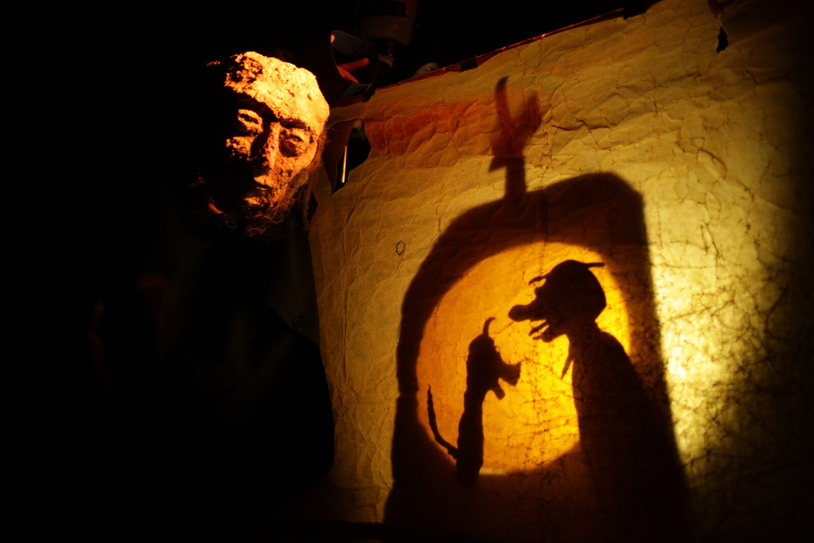 Mrzácká vzpoura proti bezmoci, smrti a nuzáckému životu. Na jevišti masky, loutky, stroje, stíny, živá muzika.