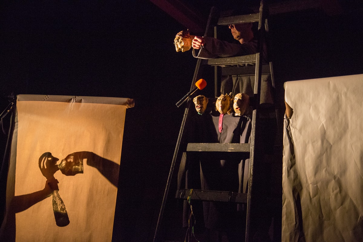 Hrají preparovaní maňásci, ruce a předměty.